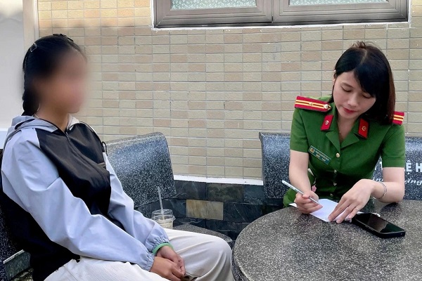 Công an phường Hương Trà, thành phố Đà Nẵng, làm việc với một nữ sinh bị 'bắt cóc online' (Ảnh: Công an phường Hương Trà).